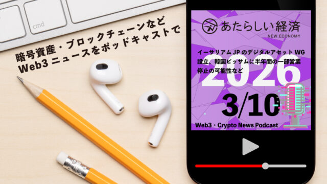 【3/10話題】イーサリアムJPのデジタルアセットWG設立、韓国ビッサムに半年間の一部営業停止の可能性など(音声ニュース)