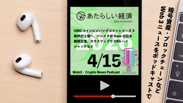 【4/15話題】GMOコインにジパングコインシリーズ3銘柄が上場へ、パシメタがBaseの日本展開支援、カウスワップでDNSハイジャックなど(音声ニュース)