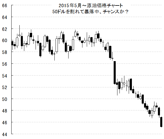 原油価格、暴落中!またチャンス到来? ブログ原油価格が暴落しており、先月50ドルの大台を割り込み、 今週は45ドルまで値下がりしています。 今年始め、50ドルを割れた時にたんまり原油CFDを買い込んで 大儲けした皆様にとって、またチャンス到来といえるでしょうか? X Facebook はてブ Pocket LINE コピー 2015.08.062015.10.04 原油価格が暴落しており、先月50ドルの大台を割り込み、 今週は45ドルまで値下がりしています。 今年始め、50ドルを割れた時にたんまり原油CFDを買い込んで 大儲けした皆様にとって、またチャンス到来といえるでしょうか? 続きを読む 参照元:為替王