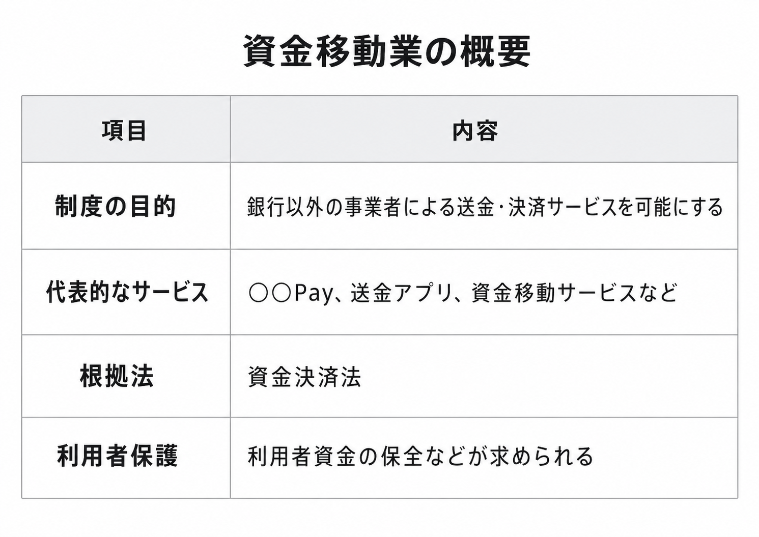 資金移動業とは、銀行以外の事業者が送金サービスを提供できる制度です。