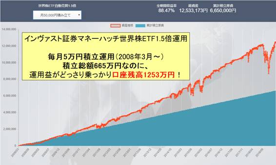 ◎ 毎月5万円積み立て→ 10年ちょっとで口座残高残高1,253万円!
