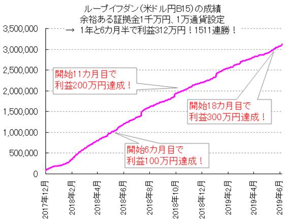 【最新検証結果】FX完全自動売買ループイフダン米ドル円B15、1年6ヶ月半で1500連勝・負けゼロ達成!勝率100%の実績!月収平均16万9千円!厚生年金よりたくさん収入があります!