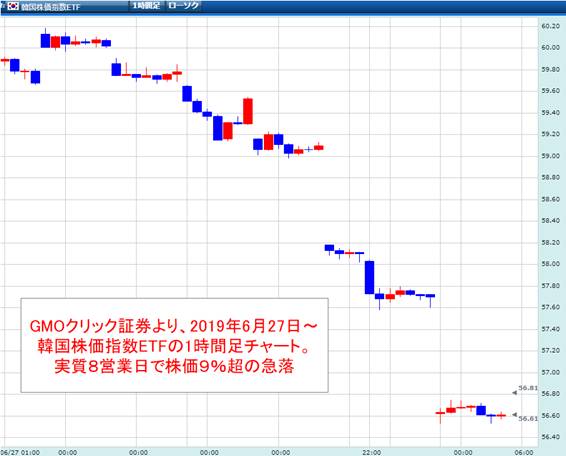 image002韓国株安、止まらず! 日本からの輸出優遇撤廃が通告されてから約10日。