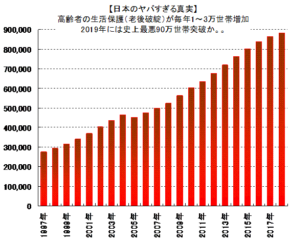 あまりニュースになっていませんが、高齢者の生活保護が史上初90万世帯に届きそうです。老後大量破綻時代に突入し、深刻な社会問題になります。なぜか?