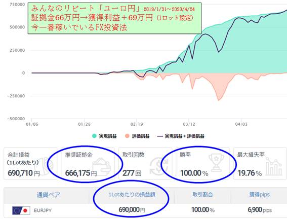 損を取り戻すFX投資法「ユーロ円の売り自動売買」証拠金67万円が全自動で3カ月で倍増! 「米ドル円の買い」は老後3千万円へ順調。 大波乱の2020年、ロスカットされた読者の方もたくさんおられますが大丈夫です。 これから取り戻すチャンスはたくさんあります。FX投資法に限ってみれば ●いま絶好調で稼ぎまくっているのが「ユーロ円の売り自動売買」 みんなのリピート「ユーロ円売り」証拠金67万円→3カ月... X Facebook はてブ Pocket LINE コピー 2020.04.25 大波乱の2020年、ロスカットされた読者の方もたくさんおられますが大丈夫です。 これから取り戻すチャンスはたくさんあります。FX投資法に限ってみれば ●いま絶好調で稼ぎまくっているのが「ユーロ円の売り自動売買」 みんなのリピート「ユーロ円売り」証拠金67万円→3カ月以内に利益+69万円!(含み損ゼロ) ●長期的に安定して稼いでいるのが「米ドル円の買いの自動売買」 みんなのリピート「米ドル円買い」証拠金300万円→約8カ月で利益+103万円(含み損-36万) 続きを読む 参照元:為替王