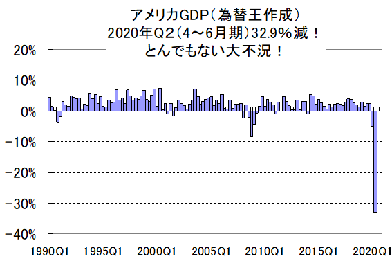 アメリカGDP、過去最悪マイナス32.9%!アメリカNYダウ株がいまだ高水準なのはナゼ?いつ下がる? アメリカGDP経済成長率、最新データ(2020年4~6月期)は マイナス32.9%! リーマンショック(最大マイナス8%台)ほか、過去どんな不況とも比べ物にならない恐慌レベル! NYダウ株価は昨夜一時500ドル超の急落! X Facebook はてブ Pocket LINE コピー 2020.07.31 アメリカGDP経済成長率、最新データ(2020年4~6月期)は マイナス32.9%! リーマンショック(最大マイナス8%台)ほか、過去どんな不況とも比べ物にならない恐慌レベル! NYダウ株価は昨夜一時500ドル超の急落! 続きを読む 参照元:為替王