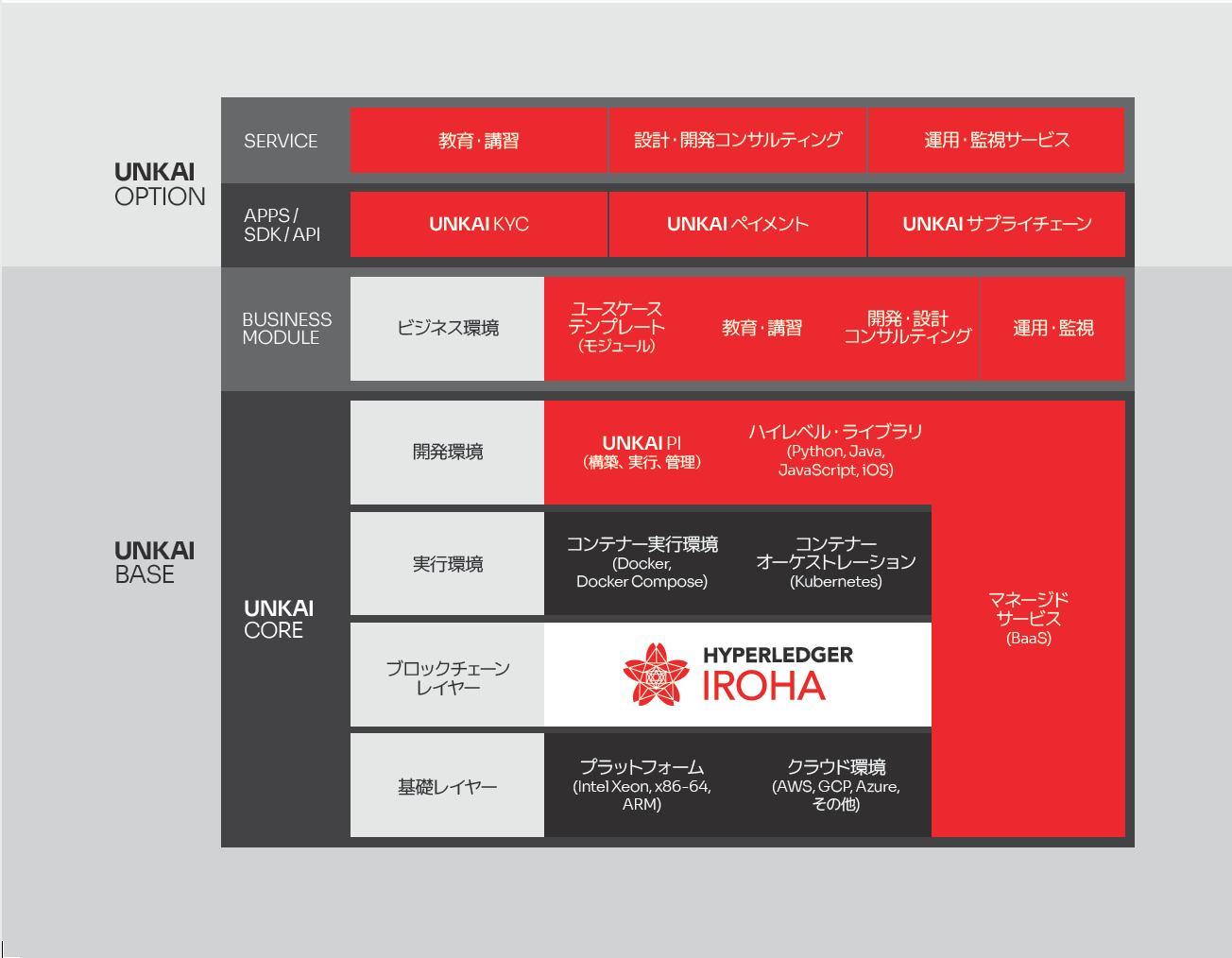 今回リリースされた「UNKAI/雲海」は、この「ハイパーレジャーいろは」を基にして作られた「UNKAI BASE」と、「UNKAI BASE」に追加機能を付加して提供をするエンタープライズ向けのサービス・パッケージであるとのこと。