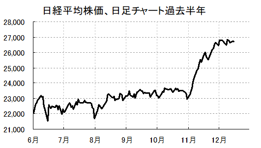 日経平均株価チャート、年末年始のポイントと見通し 左図は日経平均株価の過去半年の日足チャート。 先月、暴騰したあと、今月は2万6千円台で落ち着いた値動きとなっています。 X Facebook はてブ Pocket LINE コピー 2020.12.21 左図は日経平均株価の過去半年の日足チャート。 先月、暴騰したあと、今月は2万6千円台で落ち着いた値動きとなっています。 続きを読む 参照元:為替王