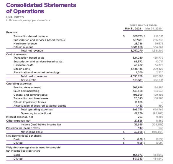 ちなみに2020年Q1のビットコイン売上は約330億円(約3億ドル)であったので、1年間で約11倍となった。また2020年Q1のビットコイン取引に関する売上総利益は約7億3,000万円(約667万ドル)であったので、1年間で約11倍となった。