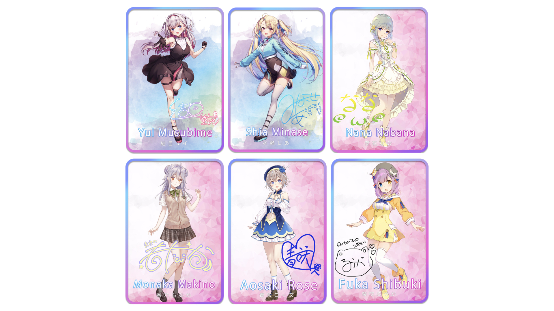 発表によると5月22日に販売する対象のVTuberは結目ユイ、水瀬しあ、菜花なな、巻乃もなか、青咲ローズ、紫吹ふうか以上6名のNFTトレカとなっている。