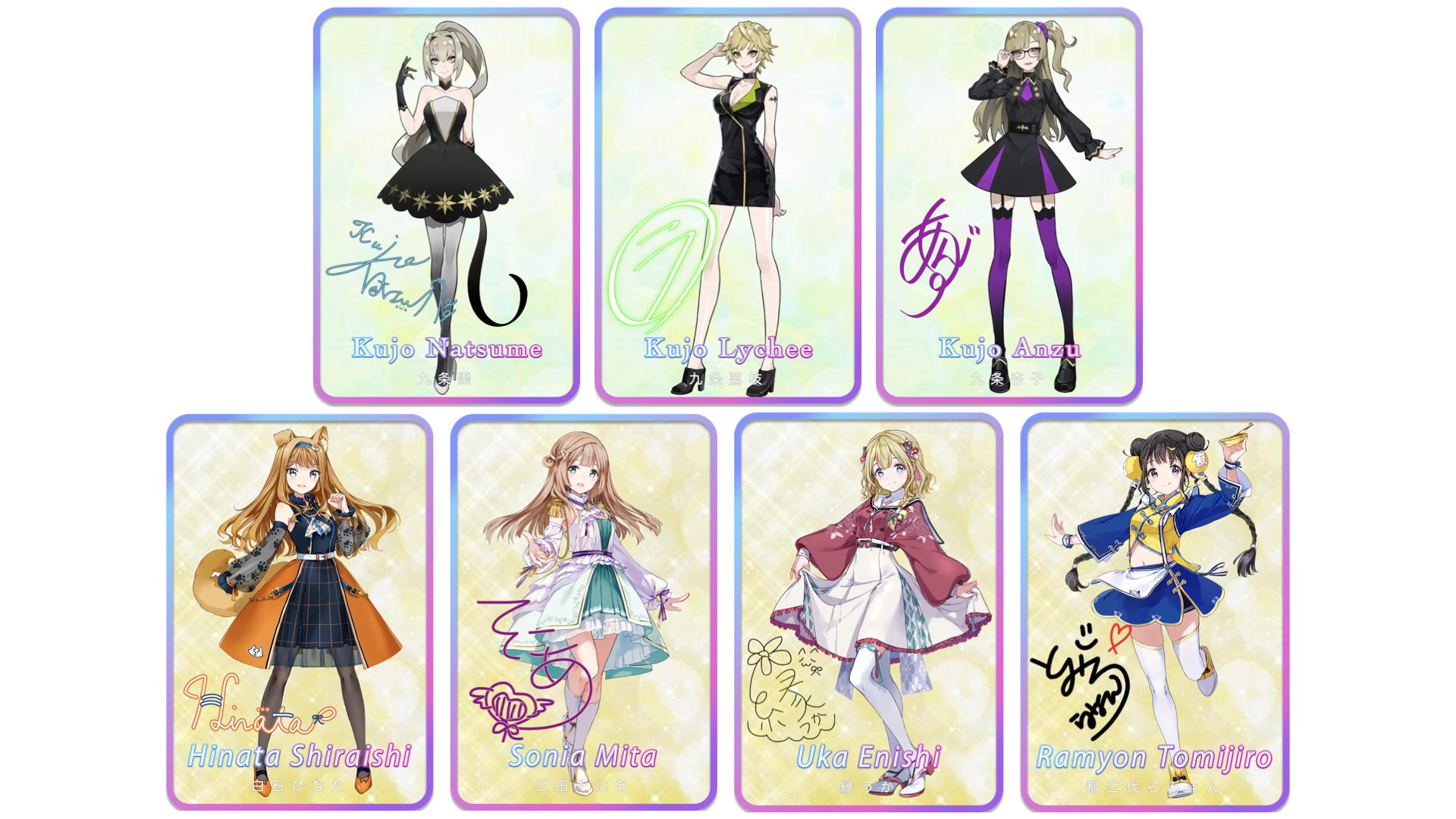 また5月23日販売のVTuberは九条 棗、九条 茘枝、九条 杏子、白石ひなた、三田そにあ、縁うか、都三代らみょん以上7名のNFTトレカとなっている。