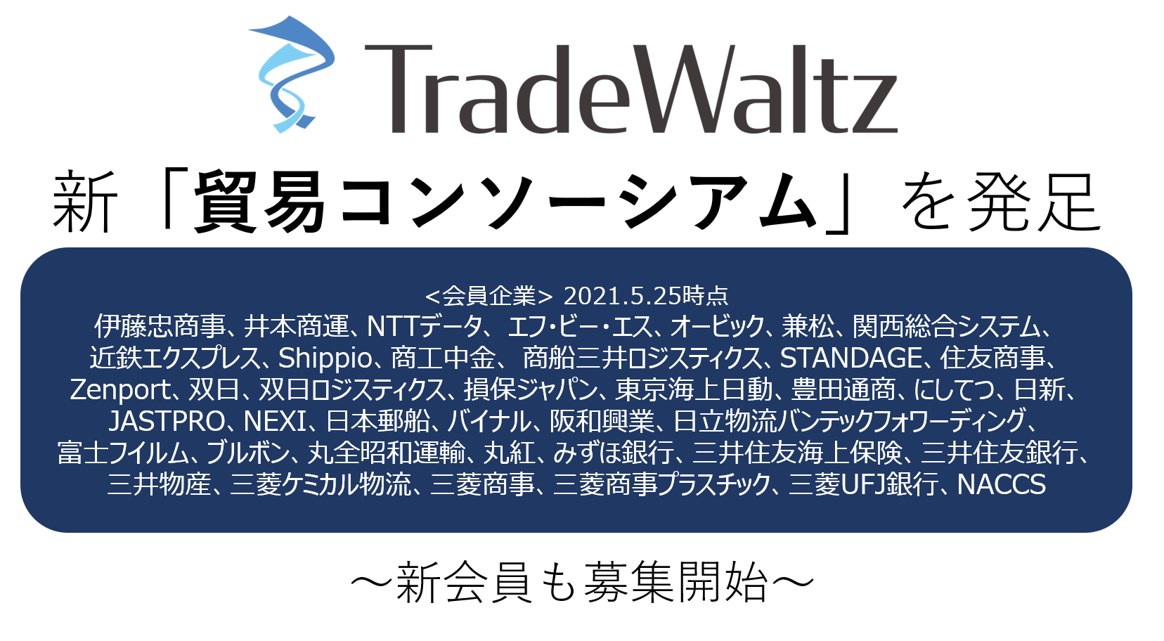 ブロックチェーンを活用した貿易情報連携プラットフォーム「TradeWaltz」を運営する株式会社トレードワルツが、新「貿易コンソーシアム」の発足を5月25日発表した。