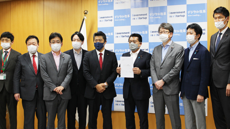 自由民主党のブロックチェーン推進議員連盟が、平井卓也デジタル改革担当大臣に対し「ブロックチェーンを国家戦略に。」と題するブロックチェーンの普及に向けた提言を5月27日15時30分に手交した。