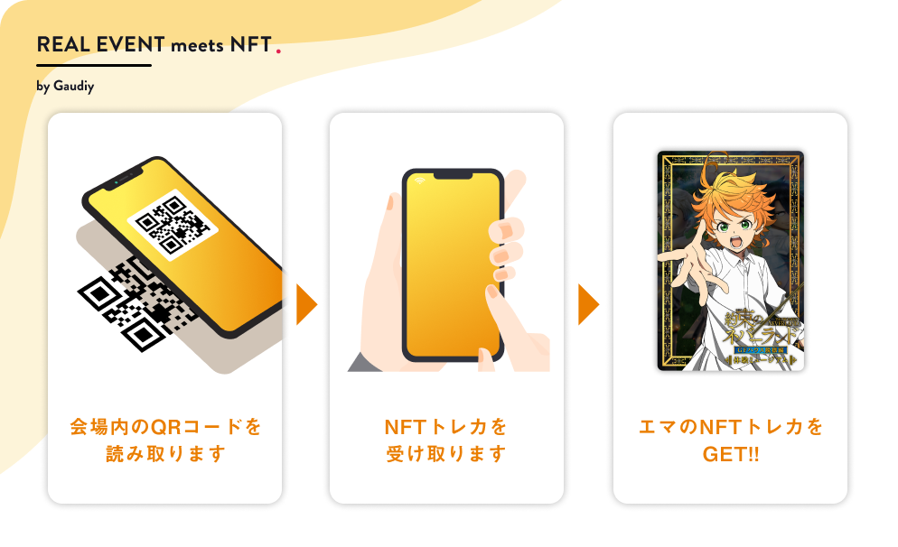 株式会社Gaudiy(ガウディ)が7月17日から12月30日まで開催される体験ミュージアム『約束のネバーランド』GFハウス脱獄編にて、来場者限定のNFTを配布することを7月8日発表した。オフライン会場において、QRコード読み取りによるNFTの受け取りは国内初の取り組みとなるとのこと。