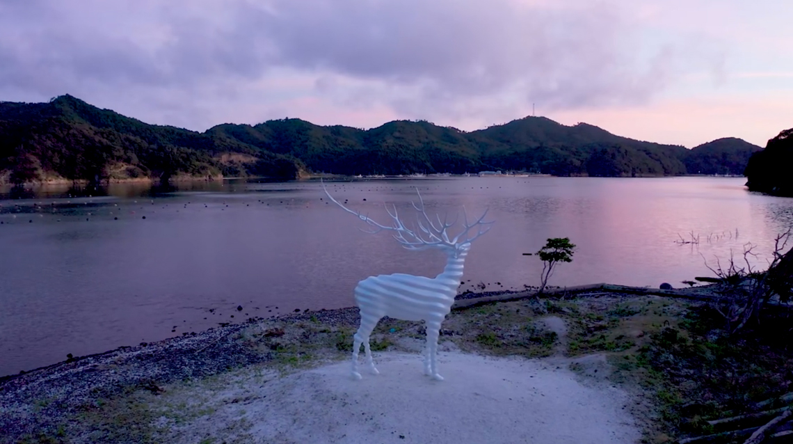 「White Deer (Oshika)」は、日本古来の神話の中で描かれる「神鹿(しんろく)」を現代の技術を用いて再解釈した名和氏の彫刻作品。宮城県石巻を舞台に開催された総合芸術祭「Reborn-Art Festival 2017」にて発表され、鹿が多く生息する牡鹿半島の荻浜地区に設置されている、全長6メートルを超えるパブリックアートだ。