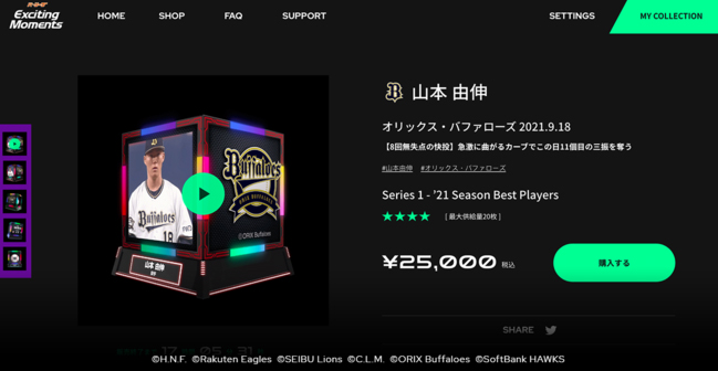 初期ラインナップとして2021シーズンで特に活躍した選手を中心に計18プレーを収録予定とのこと。チーム名、選手名、販売数は次の通りだ。