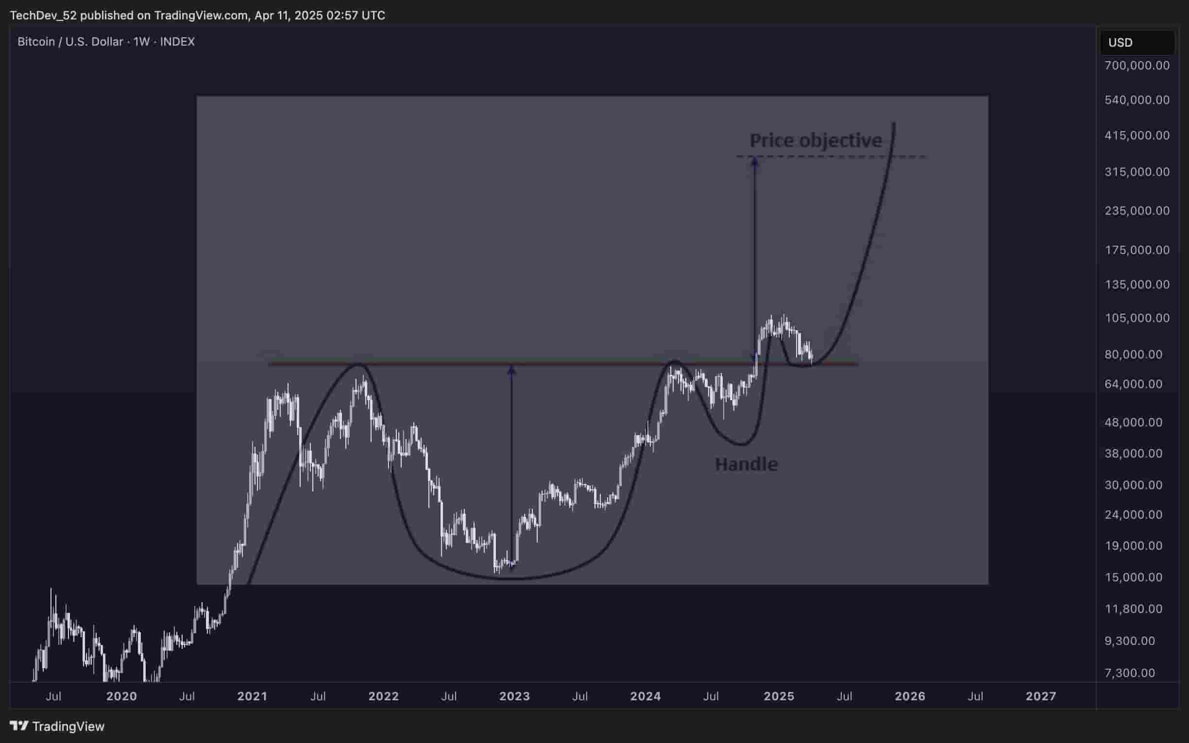 「カップウィズハンドル」チャートパターン(画像:TechDev氏投稿)