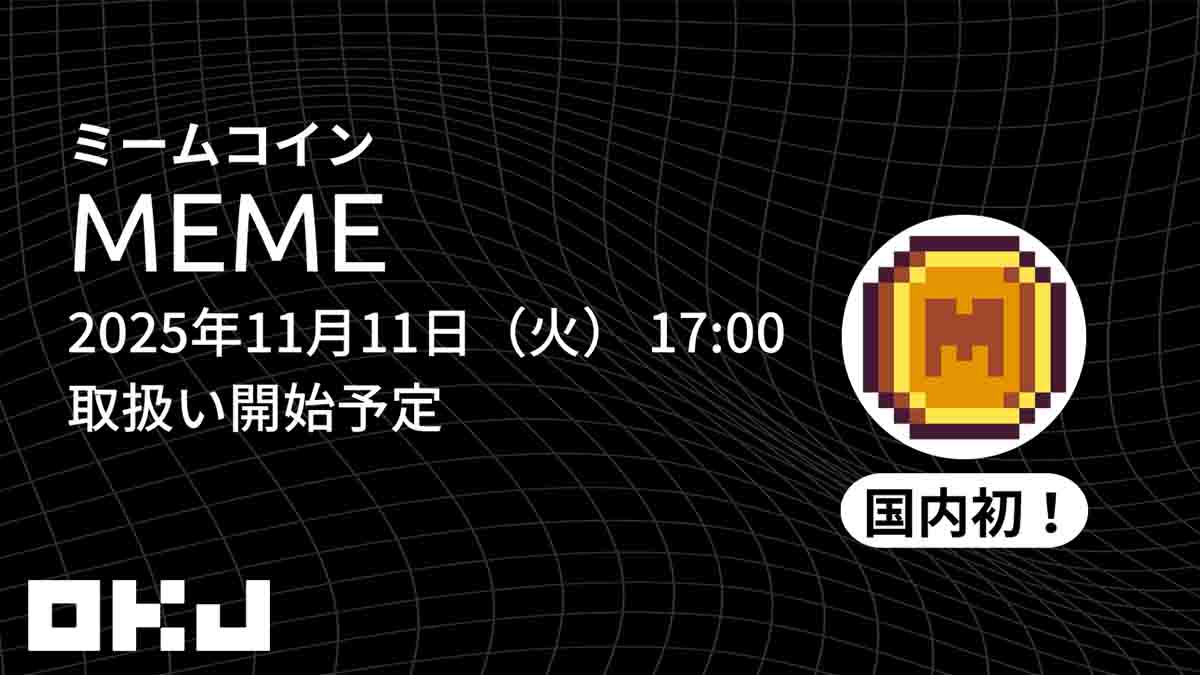 暗号資産取引所OKJ(OKCoinJapan)は2025年11月4日に、国内初上場となる「ミームコイン(MEME)」の取扱いを11日から開始すると発表しました。あわせて記念キャンペーンも開催されます。