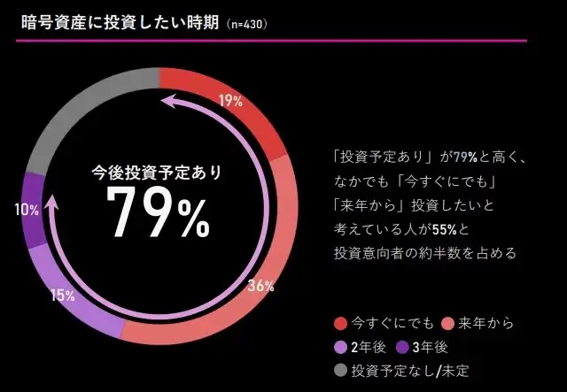 調査では、今後3年間で暗号資産への投資を予定している回答者が79%に達したことも明らかになりました。