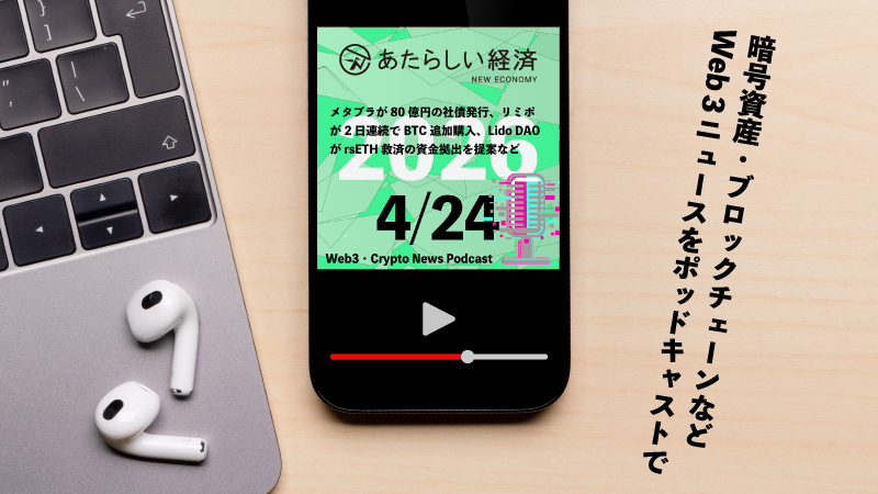 ブロックチェーン・仮想通貨(暗号資産)・フィンテックについてのニュース解説を「あたらしい経済」編集部が、平日毎日ポッドキャストでお届けします。Apple Podcast、Spotify、Voicy、YouTubeなどで配信中。ぜひとも各サービスでチャンネルをフォロー(購読登録)して、日々の情報収集にお役立てください。