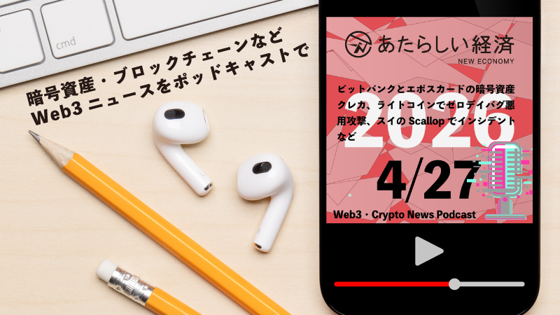 ブロックチェーン・仮想通貨(暗号資産)・フィンテックについてのニュース解説を「あたらしい経済」編集部が、平日毎日ポッドキャストでお届けします。Apple Podcast、Spotify、Voicy、YouTubeなどで配信中。ぜひとも各サービスでチャンネルをフォロー(購読登録)して、日々の情報収集にお役立てください。