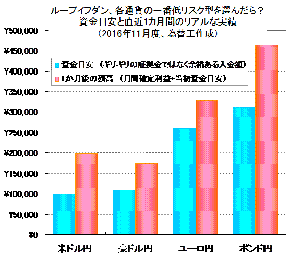 ループイフダンはどの通貨ペアを選んでも、一番低リスクの安全運転タイプで、先月は勝率100%!資金10万円でスタートして、淡々と毎日爆益を一番生み出したのは、あの通貨ペア! ループイフダン、どの通貨を選ぶか? 一番低リスクで始められるタイプなら、 どの通貨を選んでも、先月は完全無敗!全勝! ●4通貨の全成績は、320回トレードして320連勝! ●資金10万円の安全運転コースで1カ月で資金がほぼ倍増! X Facebook はてブ Pocket LINE コピー 2016.12.03 ループイフダン、どの通貨を選ぶか? 一番低リスクで始められるタイプなら、 どの通貨を選んでも、先月は完全無敗!全勝! ●4通貨の全成績は、320回トレードして320連勝! ●資金10万円の安全運転コースで1カ月で資金がほぼ倍増! 続きを読む 参照元:為替王