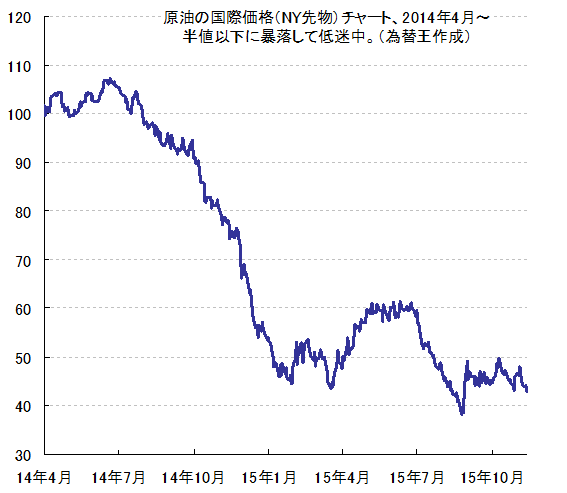 原油価格&ガソリン価格も大暴落、低迷中。 原油相場、今後の見通し ガソリン価格は去年は170円に迫るほど高騰しましたが、 最近では、130円近くまで値下がりしています。 (※レギュラーガソリン1リットルあたり全国平均) クルマを使う機会が多い方は、ホッとされているでしょう。 ガソリン価格低下の背景と、今後の見通しについてまと... X Facebook はてブ Pocket LINE コピー 2015.11.13 ガソリン価格は去年は170円に迫るほど高騰しましたが、 最近では、130円近くまで値下がりしています。 (※レギュラーガソリン1リットルあたり全国平均) クルマを使う機会が多い方は、ホッとされているでしょう。 ガソリン価格低下の背景と、今後の見通しについてまとめます。 続きを読む 参照元:為替王