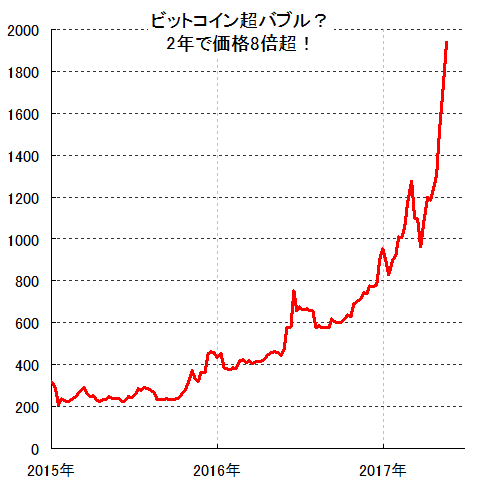 ビットコイン史上最高値、バブル加速!2年で8倍以上に値上がり! ビットコイン、 今月初めに史上初1400ドル到達とお伝えしました。 バブルはさらに加速し、先週は1900ドル突破。 ビットコイン価格は、2年前から8倍以上に値上がり。 X Facebook はてブ Pocket LINE コピー 2017.05.22 ビットコイン、 今月初めに史上初1400ドル到達とお伝えしました。 バブルはさらに加速し、先週は1900ドル突破。 ビットコイン価格は、2年前から8倍以上に値上がり。 続きを読む 参照元:為替王