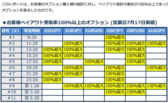 【特集2】バイナリーオプションの勝率がそんなに高いのはなぜですか?FX会社とユーザーは利益相反な関係で、ユーザーが儲かるような商品を続けていたら、FX会社は成り立たないのでは? 祝日だった7月17日月曜日。 バイナリーオプションは通常通り取引可能でした。その日、実際に 取引した顧客全体の成績をご覧ください。(左図クリックすると拡大) いつものように多くの通貨・回号で 顧客の利益(受取額)100%超えが続出! X Facebook はてブ Pocket LINE コピー 2017.07.19 祝日だった7月17日月曜日。 バイナリーオプションは通常通り取引可能でした。その日、実際に 取引した顧客全体の成績をご覧ください。(左図クリックすると拡大) いつものように多くの通貨・回号で 顧客の利益(受取額)100%超えが続出! 続きを読む 参照元:為替王