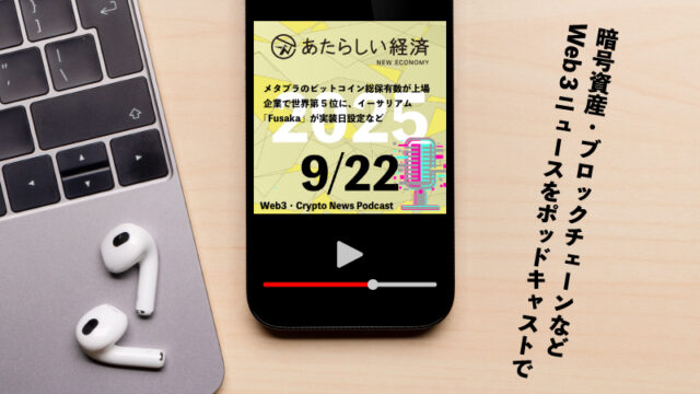 【12/12話題】wXRPがソラナに近日対応へ、ド・クォンに懲役15年、x402の最新版、Suiがブータンで技術検証など(音声ニュース) Web3ニュースをポッドキャストで! ブロックチェーン・仮想通貨(暗号資産)・フィンテックについてのニュース解説を「あたらしい経済」編集部が、平日毎日ポッドキャストでお届けします。Apple Podcast、Spotif […] 2025.12.12