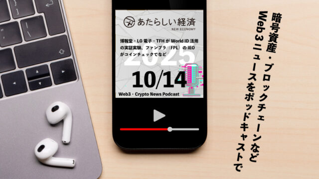 【10/14話題】博報堂・LG電子・TFHがWorld ID活用の実証実験、ファンプラ(FPL)のIEOがコインチェックでなど(音声ニュース) Web3ニュースをポッドキャストで! ブロックチェーン・仮想通貨(暗号資産)・フィンテックについてのニュース解説を「あたらしい経済」編集部が、平日毎日ポッドキャストでお届けします。Apple Podcast、Spotif […] 2025.10.14