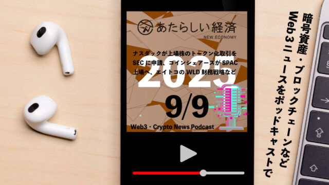 【9/9話題】ナスダックが上場株のトークン化取引をSECに申請、コインシェアーズがSPAC上場へ、エイトコのWLD財務戦略など(音声ニュース) Web3ニュースをポッドキャストで! ブロックチェーン・仮想通貨(暗号資産)・フィンテックについてのニュース解説を「あたらしい経済」編集部が、平日毎日ポッドキャストでお届けします。Apple Podcast、Spotif […] 2025.09.09
