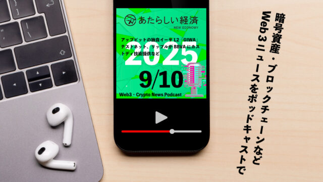 【9/10話題】アップビットの独自イーサL2「GIWA」テストネット、リップルがBBVAにカストディ技術提供など(音声ニュース) Web3ニュースをポッドキャストで! ブロックチェーン・仮想通貨(暗号資産)・フィンテックについてのニュース解説を「あたらしい経済」編集部が、平日毎日ポッドキャストでお届けします。Apple Podcast、Spotif […] 2025.09.10